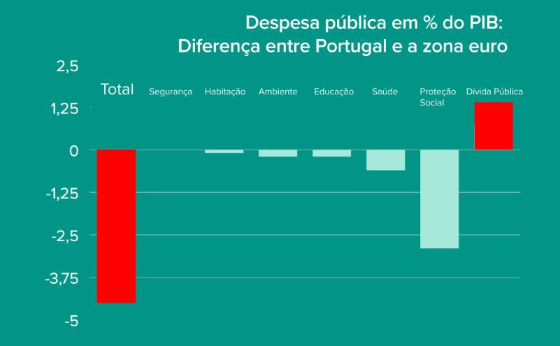 Isto não significa que o Estado não tem despesas desnecessárias e áreas onde se pode cortar. Basta pensar no dinheiro que todos os anos se gasta em Parcerias Público-Privado ou em benefícios fiscais de duvidosa desejabilidade. Mas significa que, em bom rigor, Portugal não tem "Estado a mais" na economia: tem níveis de investimento público e apoios sociais bastante abaixo do necessário.
