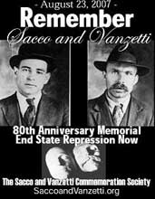 A 23 de Agosto faz 80 anos que Sacco e Vanzetti, dois imigrantes italianos, foram executados, depois de um julgamento que ficou na história como exemplo de injustiça, xenofobia e perseguição política. Em Boston vão decorrer comemorações de 23 a 25 de Agosto (pode ver notícia no site saccoandvanzetti.org).