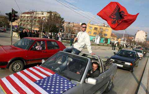 Em Pristina, o anúncio da independência foi recebido por dezenas de milhares de pessoas, que empunhavam bandeiras vermelhas da Albânia, mas também dos Estados Unidos, do Reino Unido, da Alemanha e da NATO, em sinal de reconhecimento pelo apoio dado por aqueles países e instituição à independência da província do Sul da Sérvia.