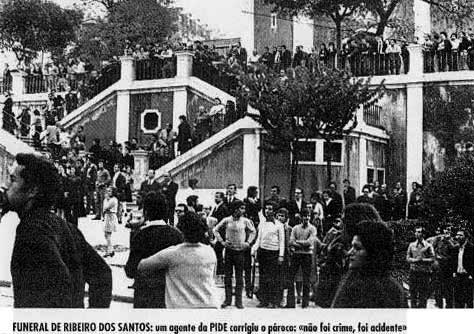 6 Na tentativa de fazer um funeral a pé, os estudantes que saíram de casa do Ribeiro Santos com a urna aos ombros, em vez de a colocarem no carro funerário que estava junto a porta, avançaram a correr em direcção à Rua das Janelas Verdes. Apercebendo disso, o capitão Maltez Soares, comandante da policia de choque, que estava à porta, ordenou uma carga policial, que varreu o largo, provocando feridos, a que alguns manifestantes responderam com pedras lançadas das ruas vizinhas.