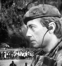 Em Fevereiro de 1997, Julius Chan, chefe do governo do Estado Independente de Papua-Nova Guiné, admitiu que não tinha outra alternativa, senão contratar a Sandline Internacional, para submeter as forças insurrectas. A companhia militar privada devia prestar os seguintes serviços: pôr à sua disposição unidades de mercenários com vasta experiência, capacidade de fogo de longo alcance e grupos seleccionados de combate que instruíam as tropas papuas em tácticas militares e operações de informação e espionagem. No entanto, uma desafortunada indiscrição no gabinete de Julius Chan deu a conhecer o contrato aos meios de comunicação. De modo que a Austrália se interpôs para defender os seus importantes investimentos financeiros em Papua-Nova Guiné e o exército nacional papuense terminou com o contrato; 48 mercenários foram detidos - ingleses, sul-africanos, italianos, franceses, etíopes, noruegueses e filipinos - as suas armas, entre as quais helicópteros de origem bielorussa, foram confiscadas; mas quatro semanas depois, por pressões políticas inexplicáveis, os 48 mercenários foram postos em liberdade e expulsos da ilha.