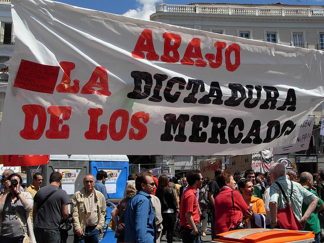 A dívida do Estado espanhol está no alvo de toda a Europa já que os mercados financeiros (bancos de investimento, fundos abutre e seguradoras) continuam a especular sobre ela com um único objetivo: obter benefícios suculentos. Isto à custa do empobrecimento do conjunto da população, porque toda esta especulação implica um aumento progressivo dos juros a pagar, reduzindo, por sua vez, os gastos do Estado, por exemplo, na educação, nas pensões de reforma e de viuvez, no subsídio de desemprego, na justiça, na saúde ou nos serviços sociais. Todas estas medidas de austeridade, equivalentes aos planos de ajustamento estrutural levados a cabo no Sul do planeta a partir dos anos 80, não fazem mais que aumentar as desigualdades sociais através do empobrecimento cada vez maior das pessoas, especialmente dos mais vulneráveis (mulheres, minorias étnicas, jovens, imigrantes, desempregados e pensionistas).