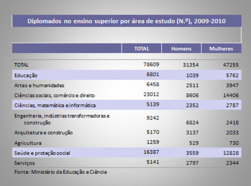 Então por onde andam as mulheres? Andam a estudar, nos vários níveis de ensino, atingindo no universitário e no pós-graduado presenças superiores aos homens em todas as áreas à exceção da construção, arquitetura, engenharias.