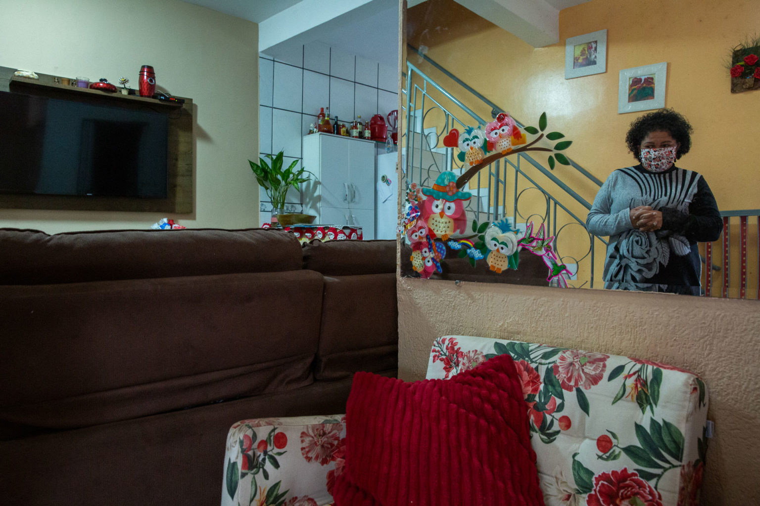 “Chego às 7h30, para poder respirar um pouco antes de pegar no batente. Fico até às 18h. Não está sendo fácil, porque muitos trabalhos fecharam as portas pra gente. Estão nos evitando. Temos que ficar trabalhando praticamente quase que isolada da patroa. A gente, periférico, se sente excluído no meio da sociedade. Com o coronavírus, mais ainda. Quando se trata de empregada doméstica, eles já olham pra gente de um jeito que parece que estamos com uma doença contagiosa”, diz. “Quando chegamos, a primeira coisa que a gente faz é se higienizar, antes de entrar pela área de serviço. Eles [os patrões], nem próximos da gente chegam”.