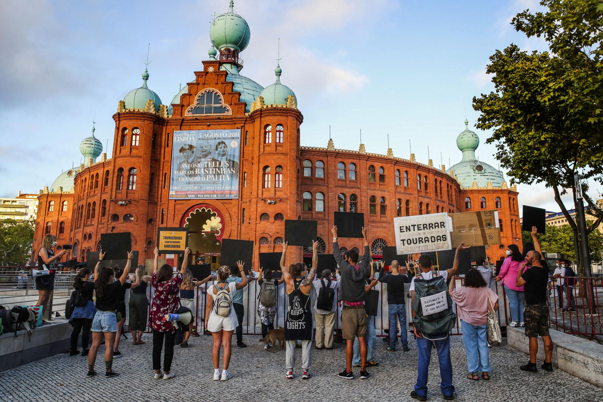 Depois da paragem nos eventos públicos devido à pandemia, a praça de touros do Campo Pequeno voltou esta quinta-feira a ser palco de uma tourada. Em reação, meia centena de pessoas participaram numa manifestação contra as touradas.