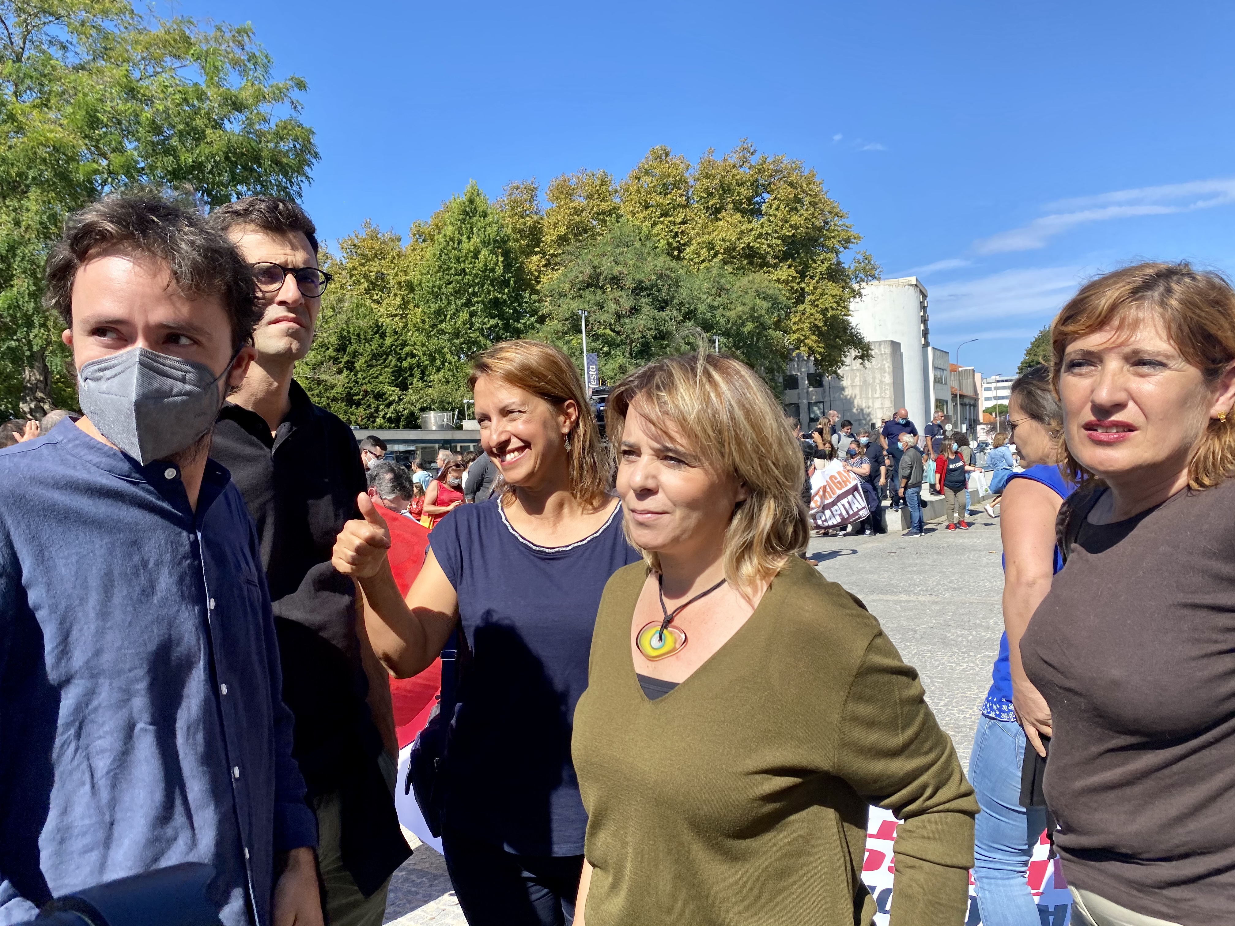 Os deputados Catarina Martins, José Soeiro e Jorge Costa marcaram presença no protesto dos trabalhadores da Galp. Também Carla Silva, cabeça de lista do Bloco à Câmara de Matosinhos e Sílvia Carreira, cabeça de lista à Assembleia Municipal foram manifestar solidariedade.