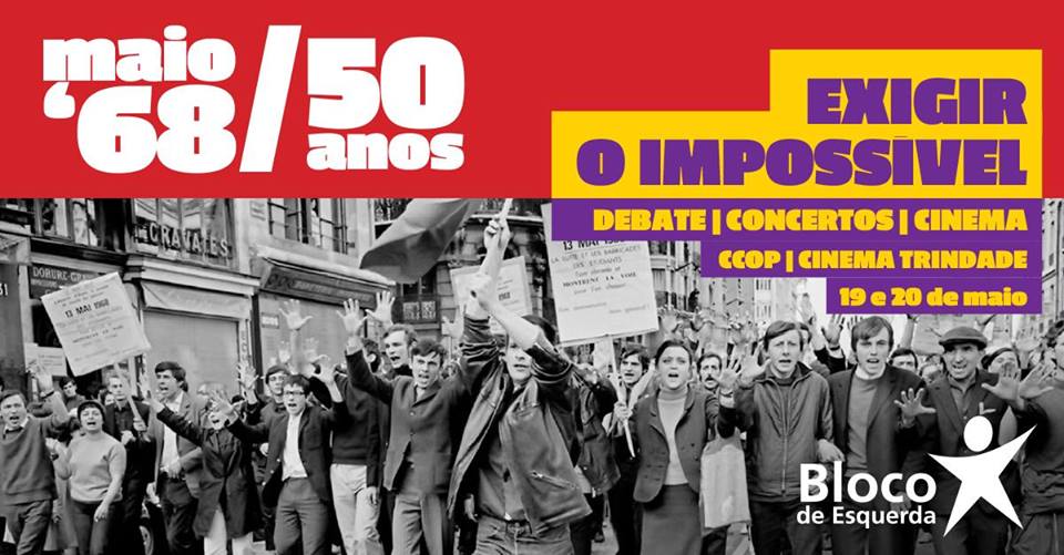 No próximo fim de semana, 19 e 20 de maio, o Bloco de Esquerda celebra o Maio de 68 no Porto com a iniciativa “50 anos do Maio de 68: Exigir o Impossível”, que cruza debate e cinema, música e imaginação.