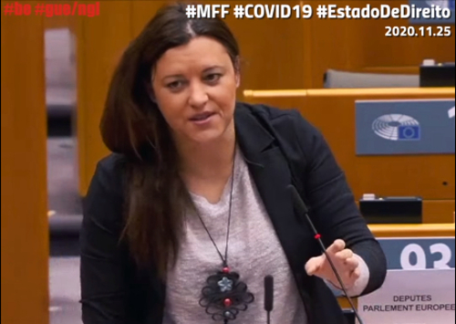 Marisa Matias refere que a presidente da Comissão Europeia apresentou a proposta “como sendo livre de condicionalidade”, mas se chega ao final “com total condicionalidade, já sem sequer as metas ambientais a serem cumpridas e ainda por cima com esta chantagem vergonhosa” por parte dos governos da Hungria e Polónia.