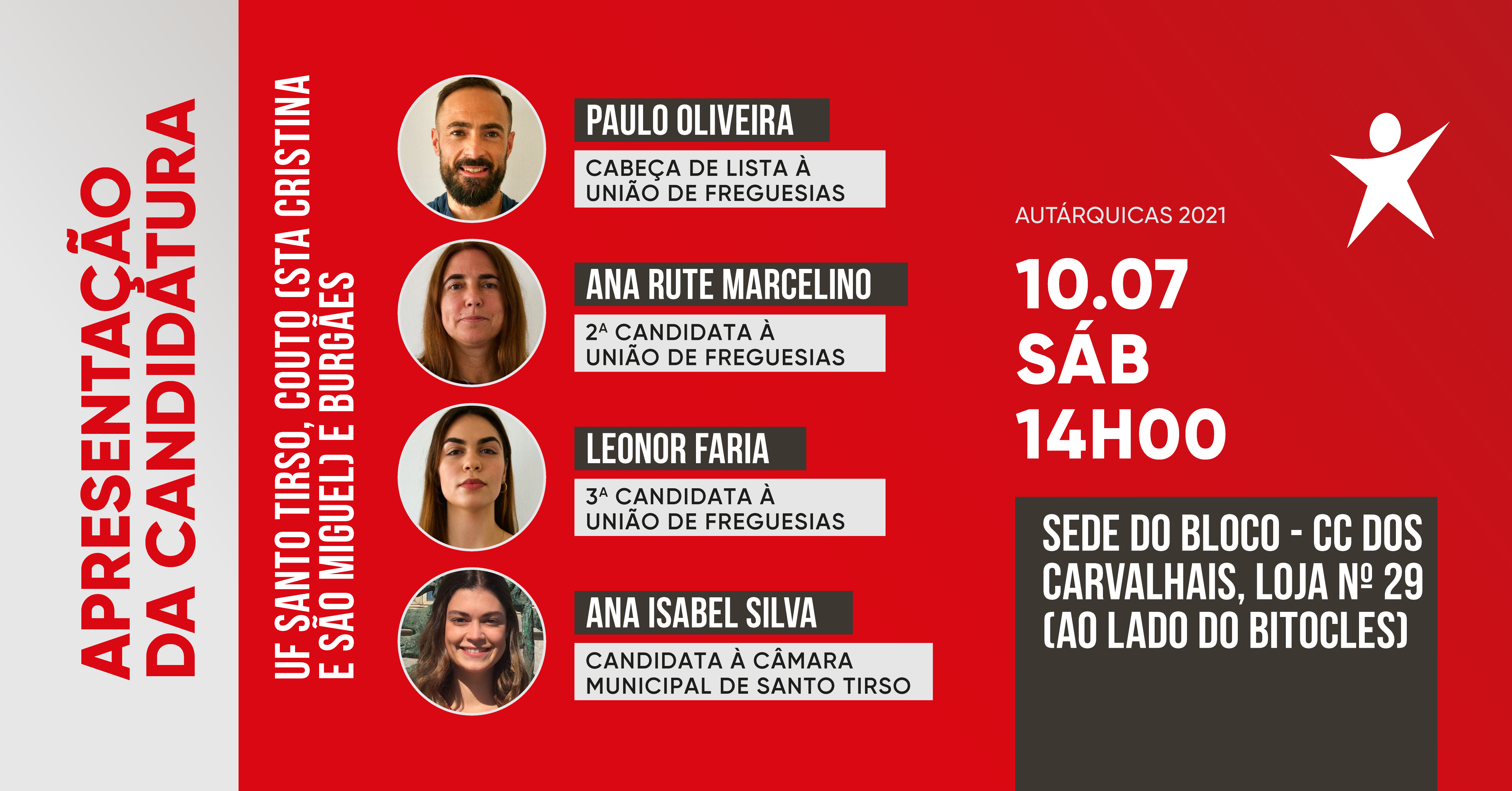 Santo Tirso: apresentação de candidatura à União de Freguesias de Santo Tirso, Couto (Sta Cristina e São Miguel) e Burgães.