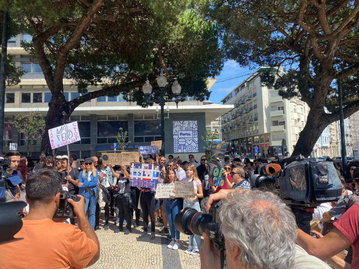 Centenas de músicos e cidadãos do Porto concentraram-se em frente à Câmara Municipal para defender a manutenção do espaço utilizado para salas de ensaio de muitas bandas e artistas. Fotos de Pedro Faria e Elisabete Carvalho.