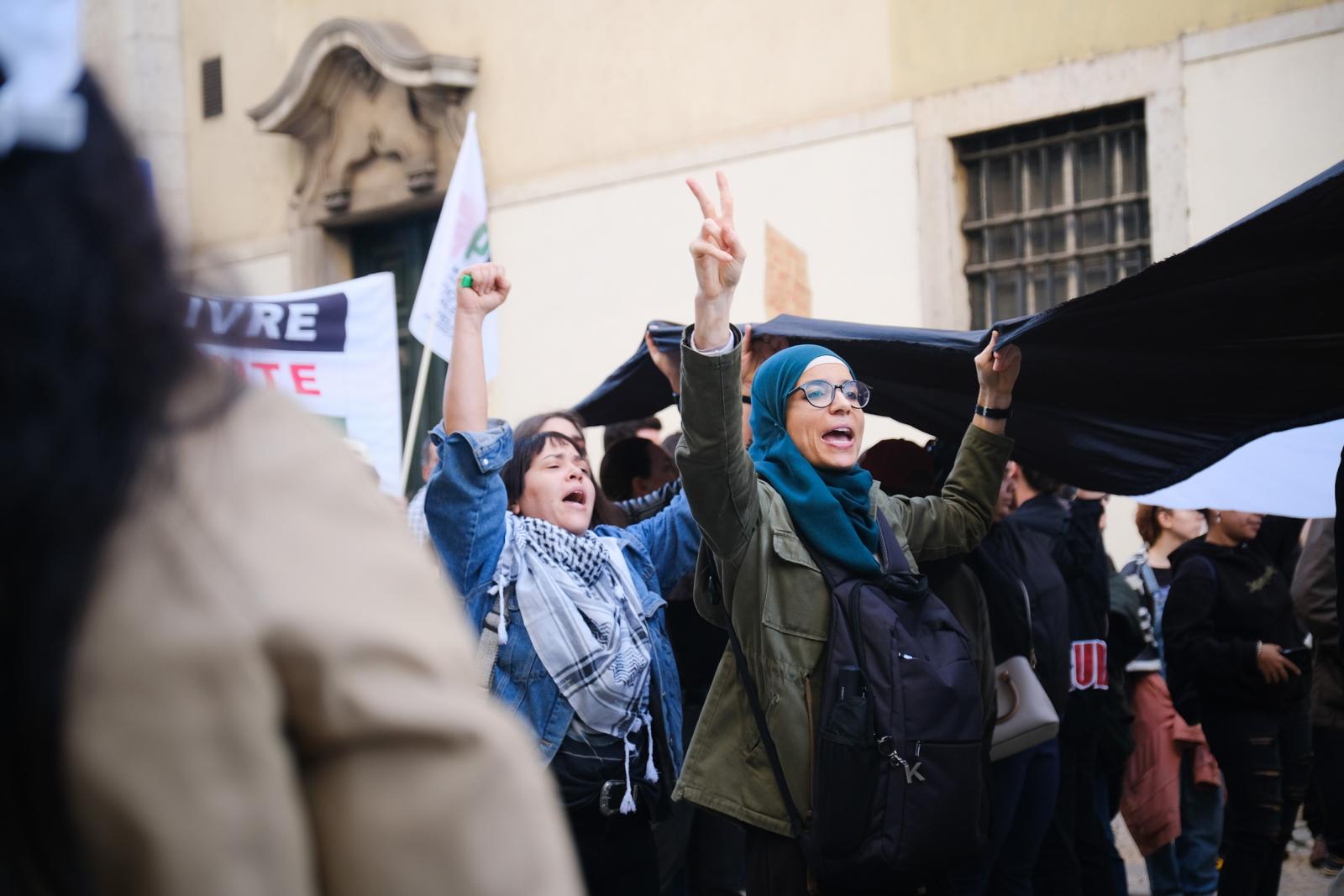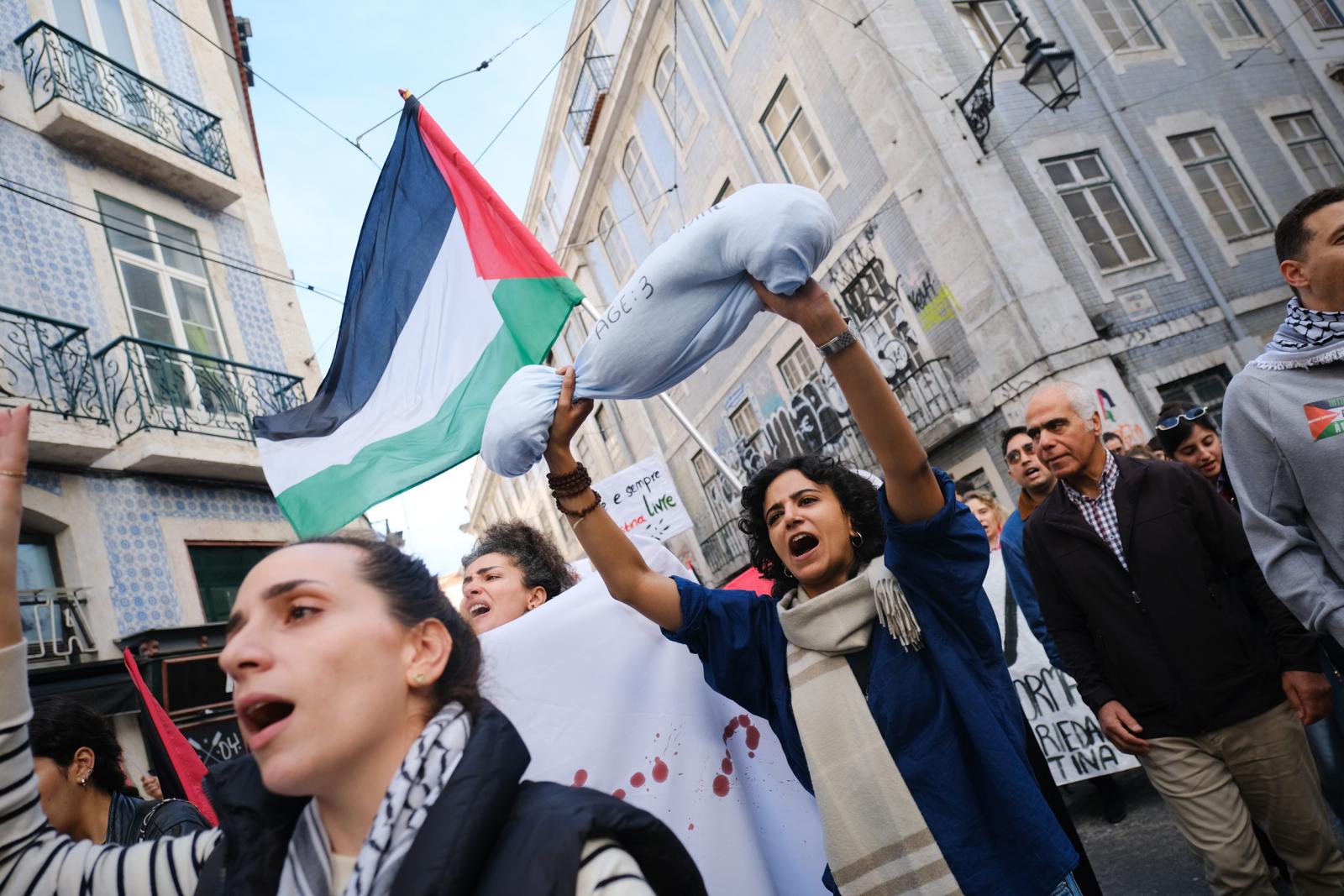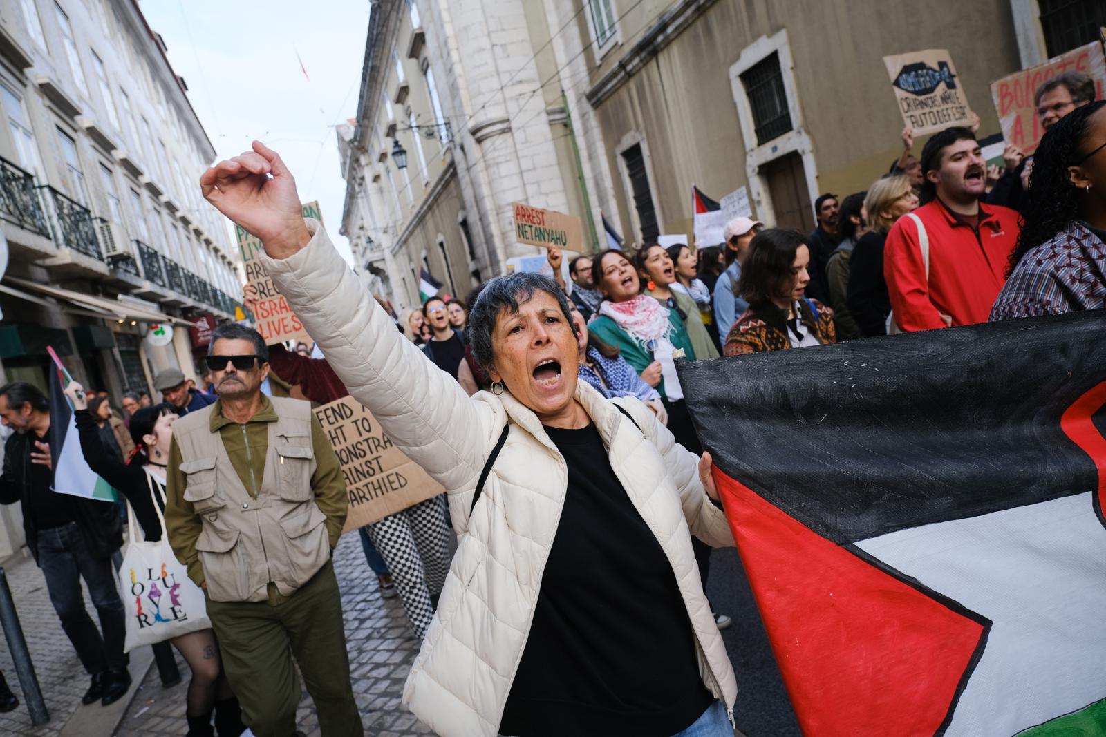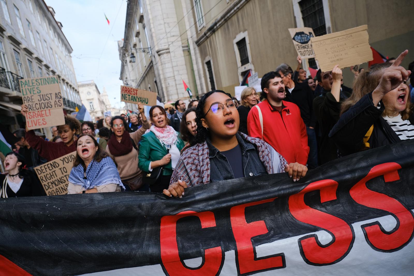 Este sábado, milhares de pessoas saíram às ruas de Lisboa para exigir um cessar-fogo e liberdade para a Palestina. Fotos de Ana Mendes.