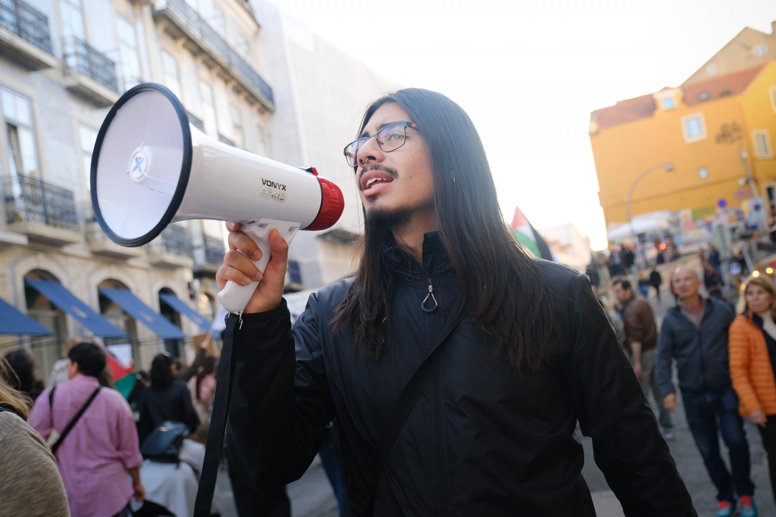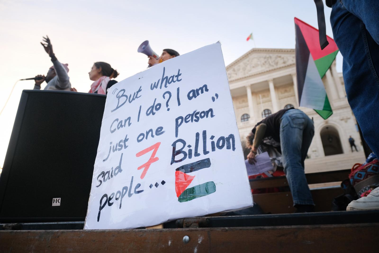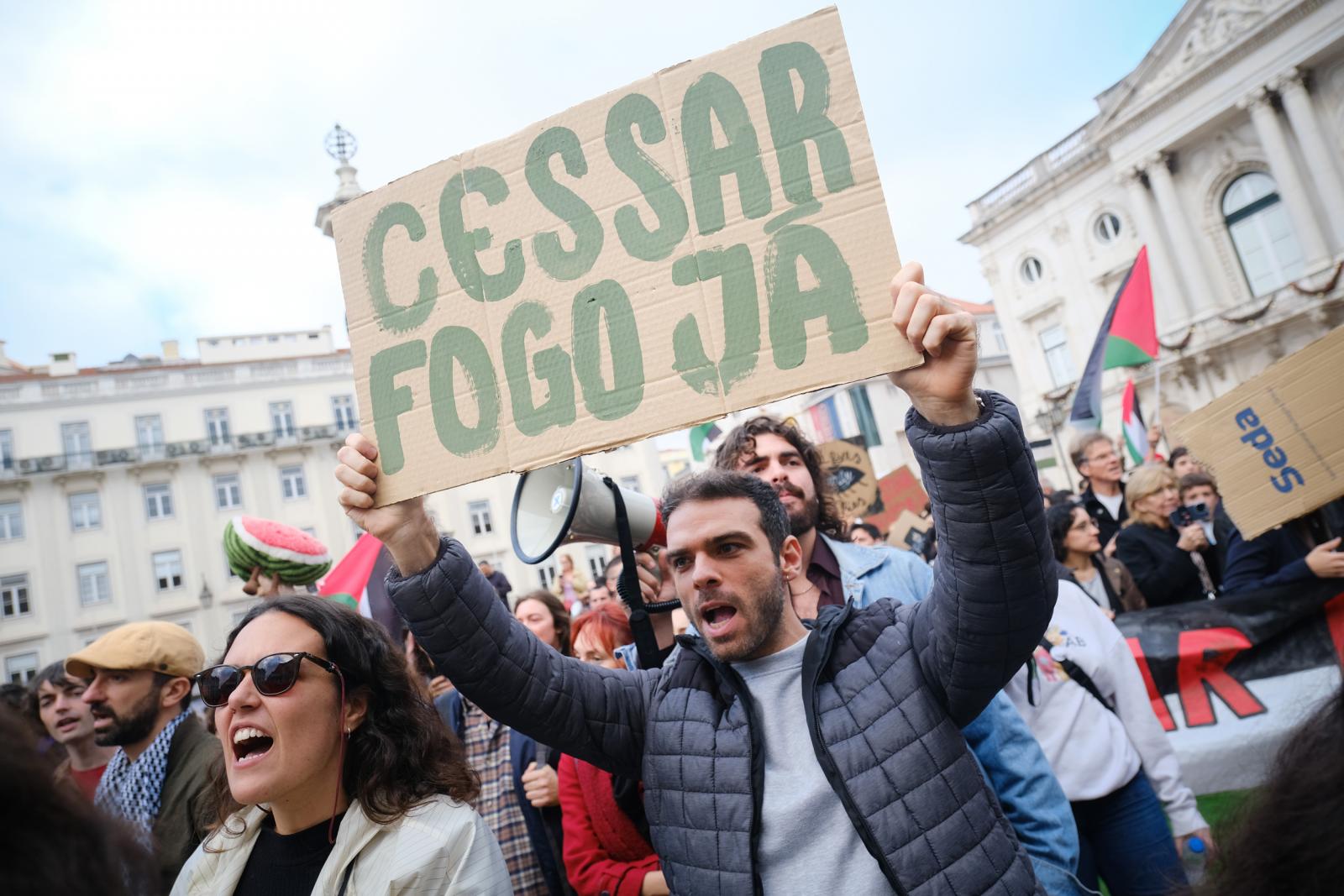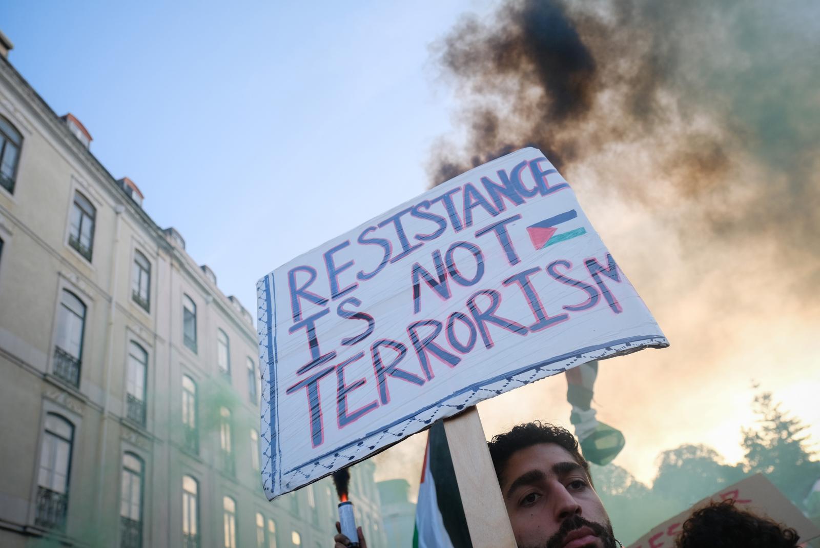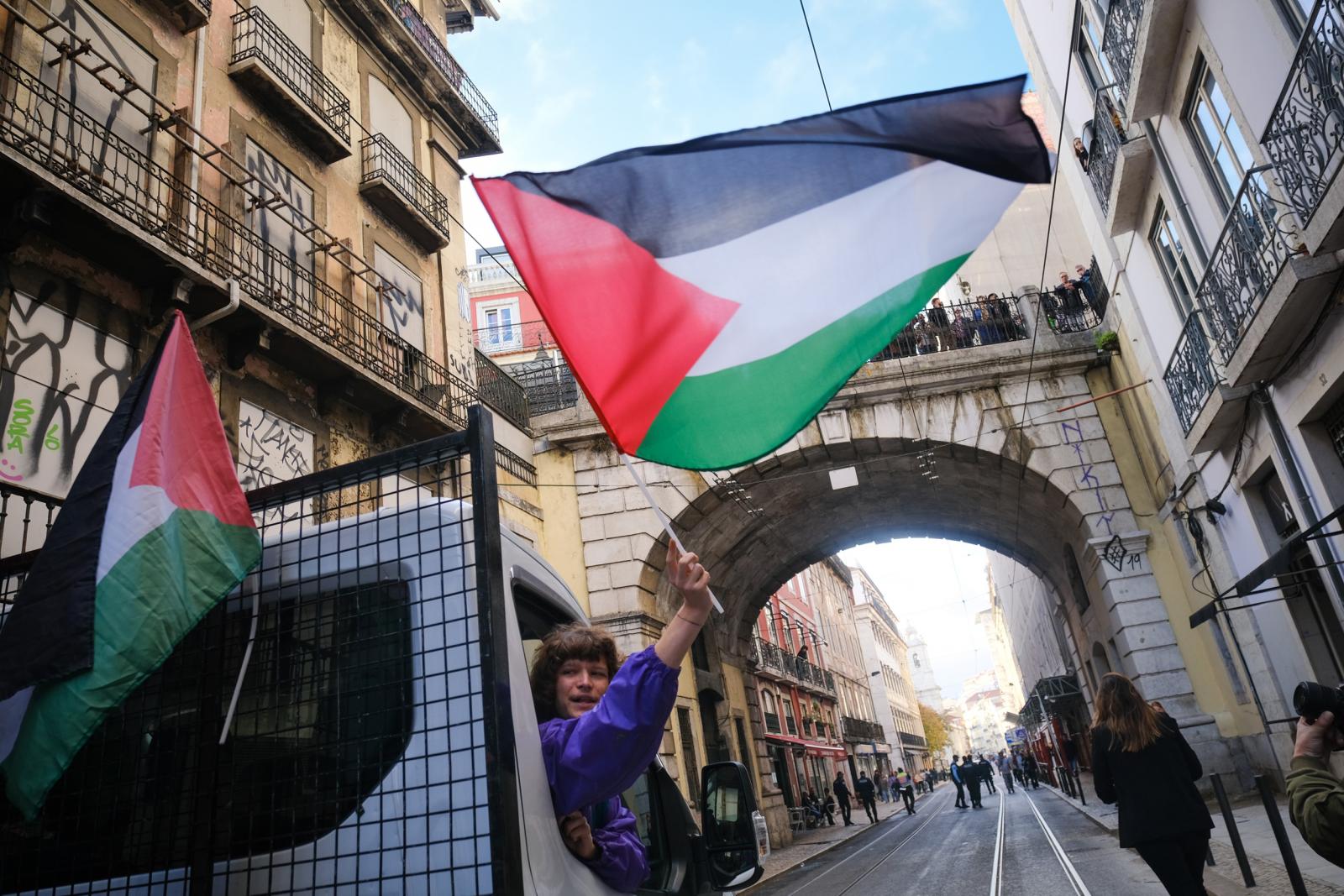 Este sábado, milhares de pessoas saíram às ruas de Lisboa para exigir um cessar-fogo e liberdade para a Palestina. Fotos de Ana Mendes.