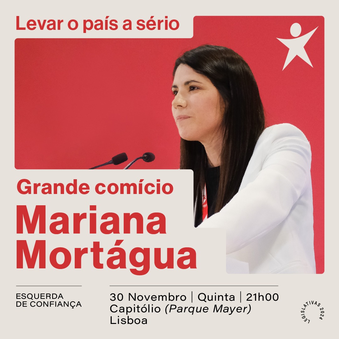 Comício do Bloco "Levar o país a sério Ler mais sobre Comício do Bloco "Levar o país a sério Com Mariana Mortágua. Entrada livre. Ver cartaz. Lisboa, Capitólio (Parque Mayer), 21h.
