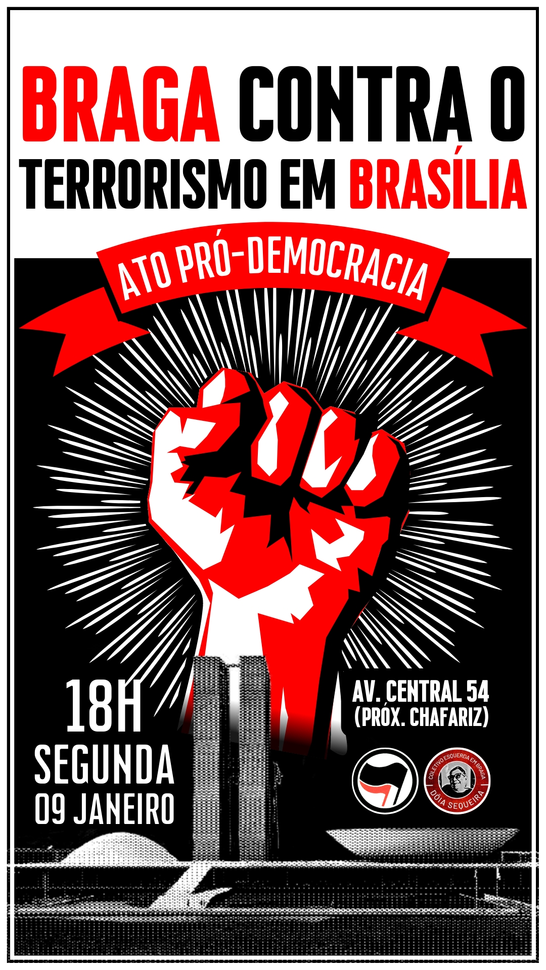 Braga, Avenida Central 54 perto do chafariz, 18h00.
