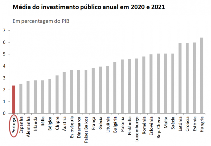 A situação não se alterou após a pandemia. Se olharmos para a média do investimento público nos últimos dois anos em todos os países da União Europeia, Portugal foi o país que menos investiu. É difícil contrariar a ideia de que o combate à crise tem sido feito pelos mínimos. É mesmo no investimento público que se vê a fragilidade da resposta em Portugal, precisamente num momento que podia ser usado para vencer atrasos antigos.