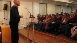 “THEO ANGELOPOULOS – Como é que Atenas, uma potência que dominava todo o mundo antigo, teve uma tal queda depois? Isso começou pela arrogância face aos outros, como fazem hoje os americanos, tentando pôr todos na ordem, à lei da bala. Um desses exercícios militares fracassou. E assim começou a decadência de Atenas. E tenho esperança que isso aconteça também aos Estados Unidos. Que a lição histórica lhes toque. É a mesma situação: um país (na altura foi uma cidade) que domina todos os outros, e que tudo impõe com uma força extraordinária.