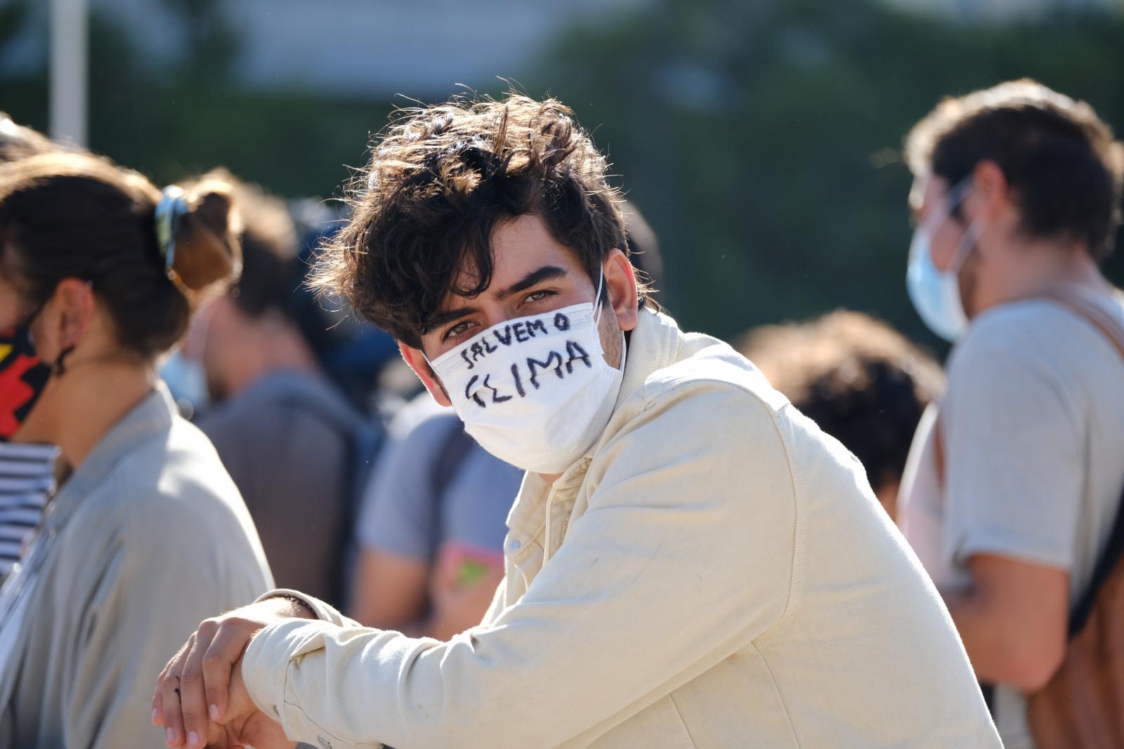 Greve Climática Estudantil de 25 de setembro, com declarações de Nelson Peralta (Deputado do Grupo Parlamentar do Bloco de Esquerda) e Sofia Oliveira (Ativista Climática).