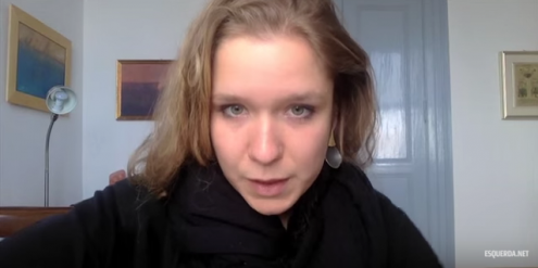 Declaração de Chloe Haralambous, que trabalha na recepção de refugiados e migrantes na ilha de Lesbos, na conferência organizada pelo Bloco “Celebração do 8 de março – Feminismo contra a guerra”.